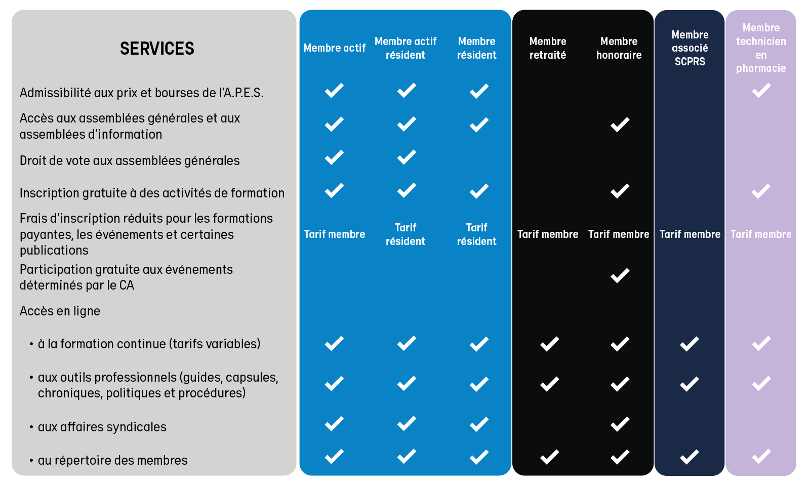 L’A.P.E.S. offre à ses membres un soutien au quotidien ainsi qu’une multitude d’avantages et de services. Explorez-les dès maintenant et rejoignez-nous pour en bénéficier pleinement.